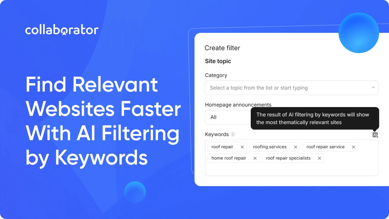 👉 Try AI filtering by keywords to find websites in the Collaborator catalog