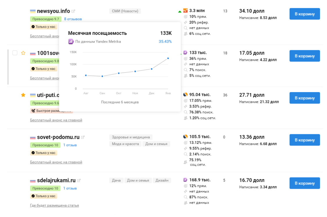 Если вы работаете в ценовом диапазоне 15-30$ за ссылку, то вероятность столкнуться с плохими сайтами невелика.