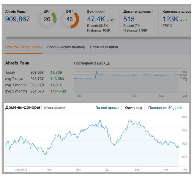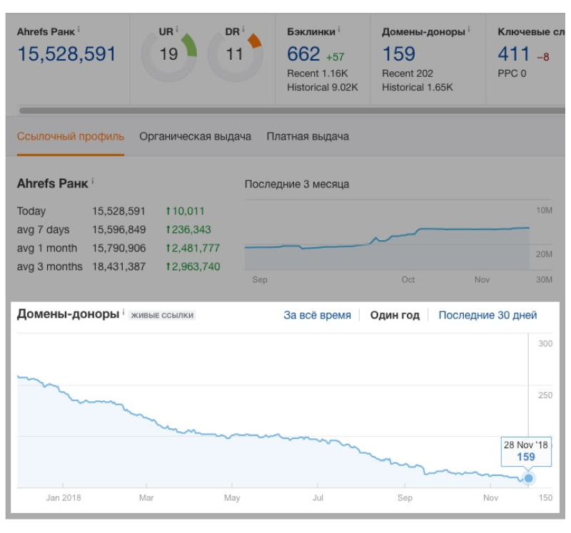 • динамика ссылочного профиля. Когда она падающая, то это еще не значит, что работать с такой площадкой не стоит. Это значит, что нужно еще подумать и взвесить цену и другие параметры. Если площадка при падающей динамике все же интересна, то вполне может быть, что вы получите отдачу от этой ссылки через какое-то время.