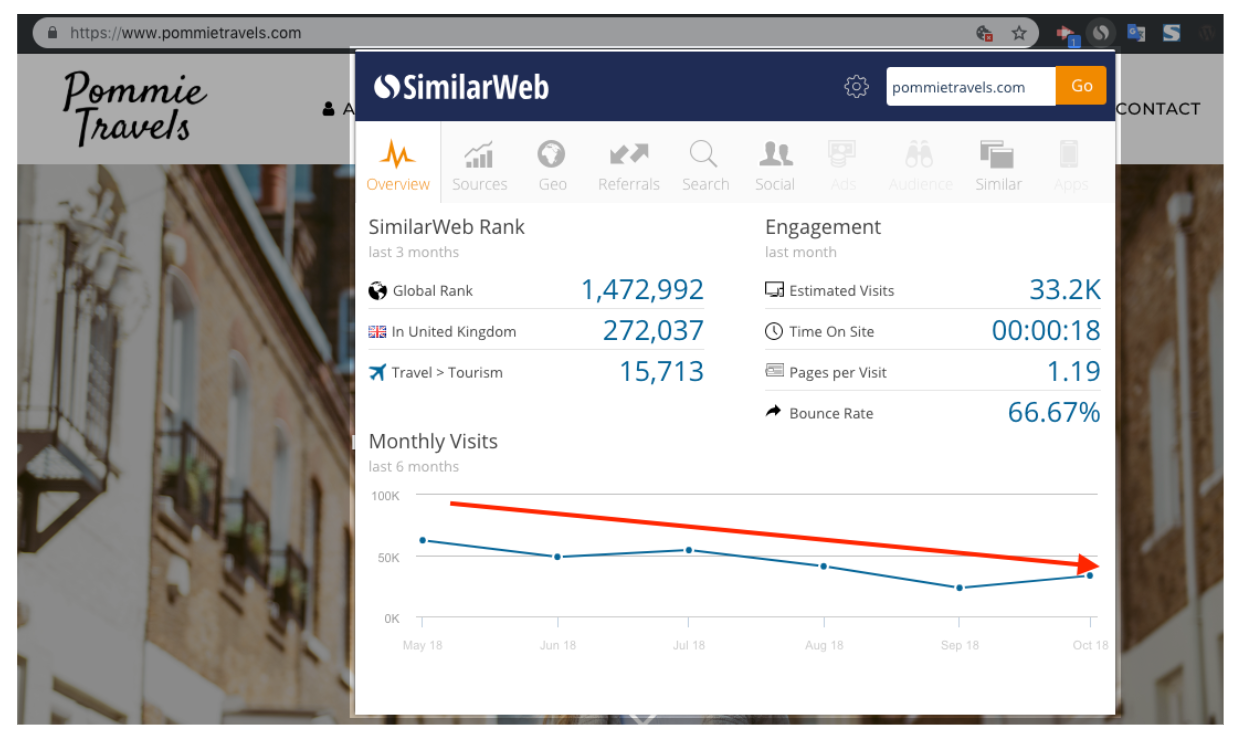 Не нужно сразу говорить нет, поскольку Similarweb не всегда точно показывает данные. Также нужно понимать текущую ситуацию рынка. Если мы смотрим сайт не в сезон (я делал этот скриншот в октябре), то спрос на туризм падает к осени и снова поднимается к началу горнолыжного сезона. То же самое бывает в нише криптовалюты. Там постоянные качки спроса, связанные с курсом биткоина;
