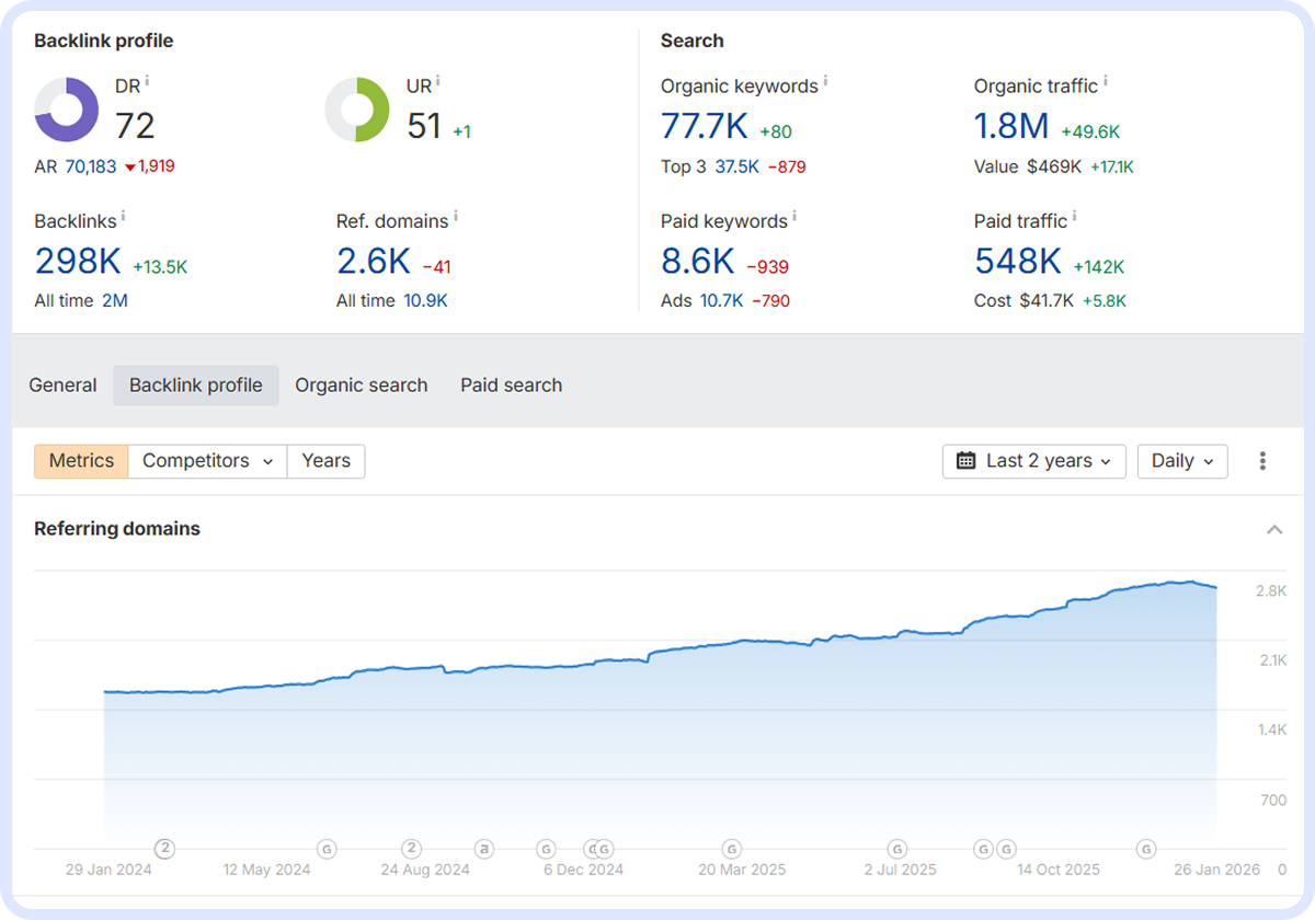 - Strong backlink profiles improve search rankings, traffic, and sales.