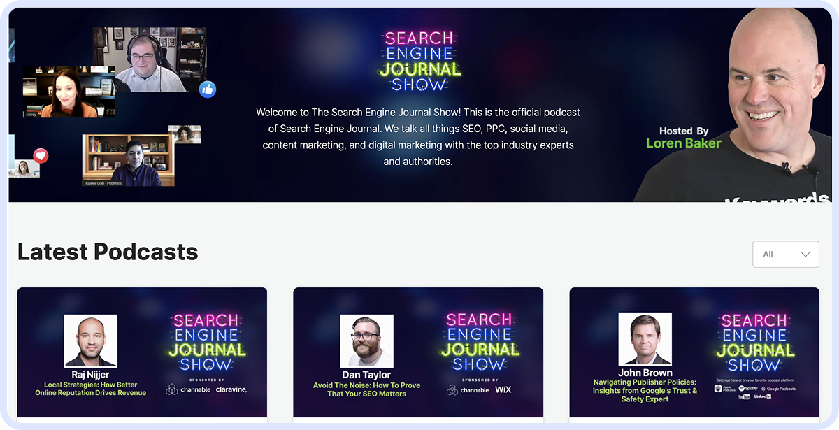 Host Loren Baker is the founder of Search Engine Journal and the digital marketing and development agency Foundation Digital. With 20+ years of search marketing experience, Loren's interviews and conversations are always informed and come from a place of experience and knowledge. You can listen to it on Youtube, Apple, and Spotify.