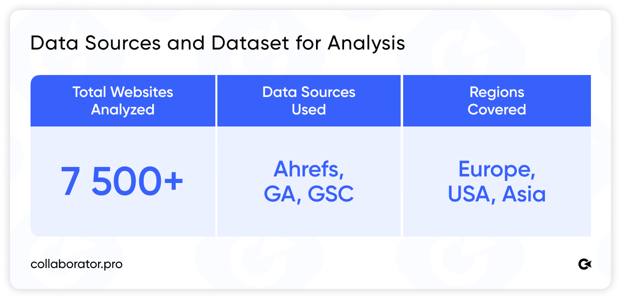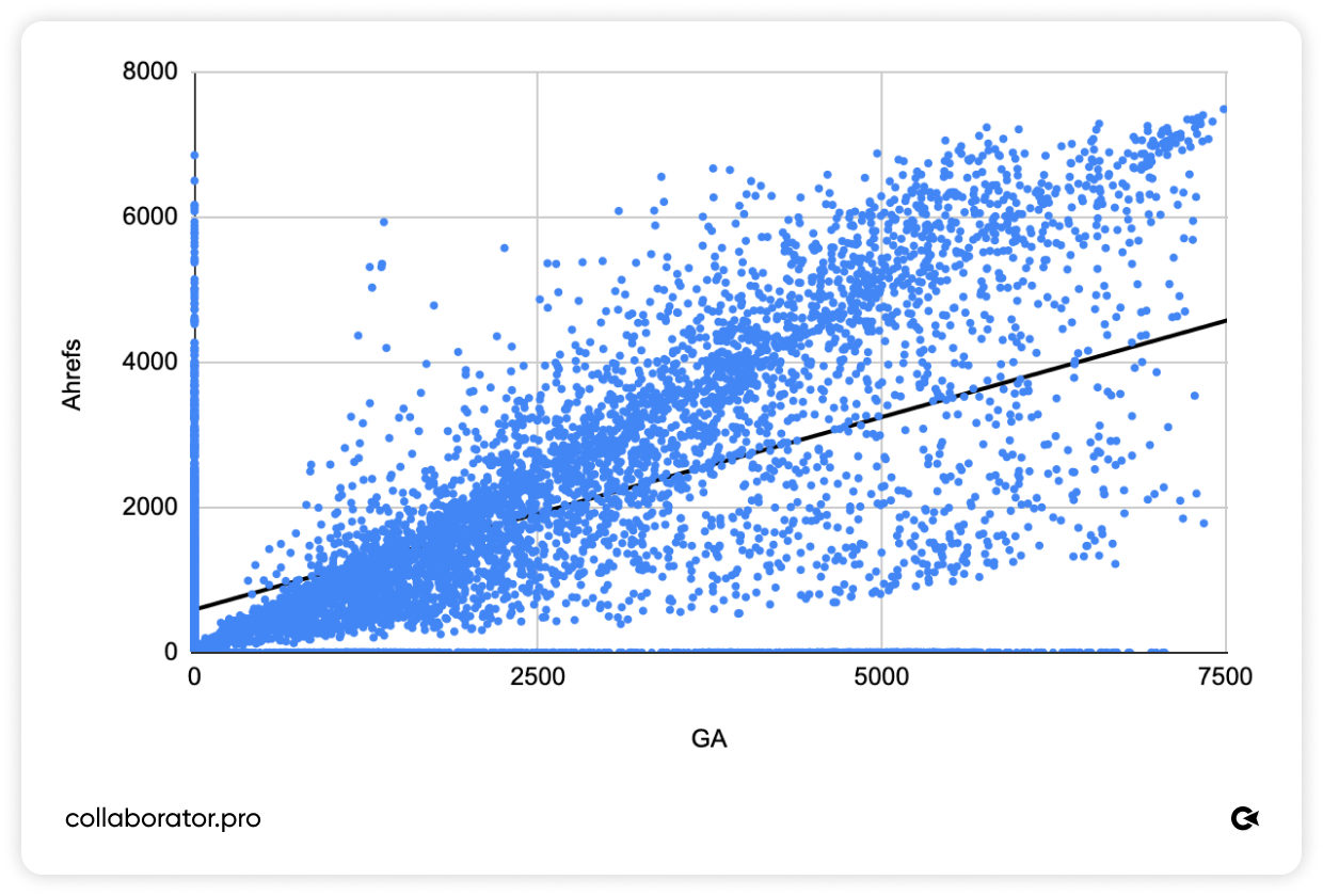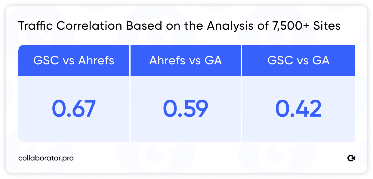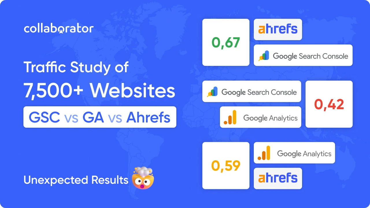 The Collaborator team, together with Serhii Koksharov, conducted a correlation analysis of traffic data from 7,500+ websites using real metrics from Ahrefs, Google Analytics, and Google Search Console.