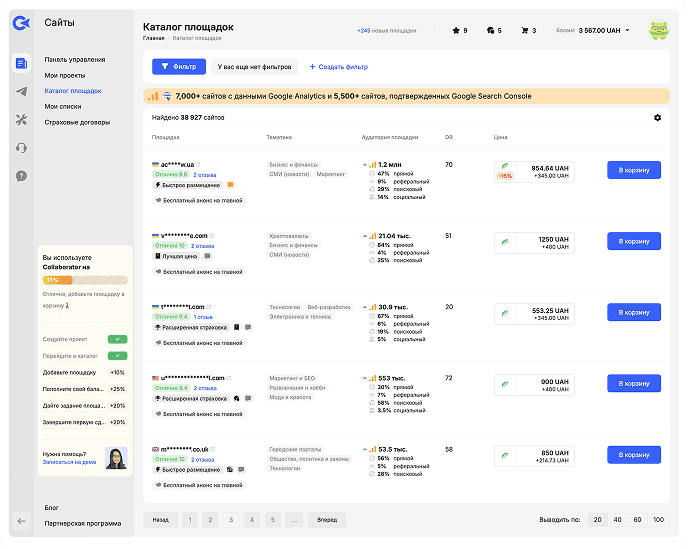 - Выберите релевантную площадку