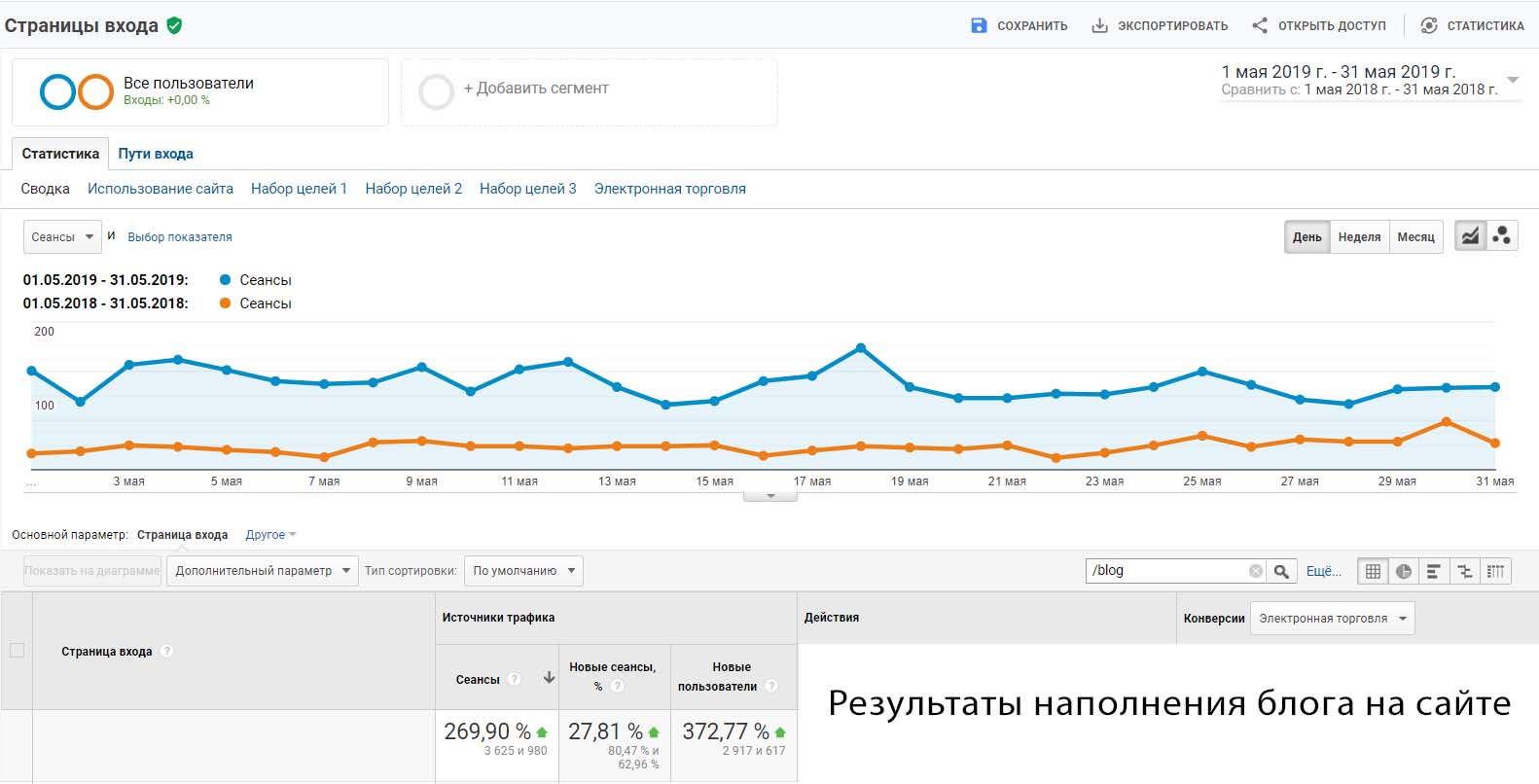 В итоге у нас было семантики на 80+ новых посадочных ( 30+ категорий и подкатегорий плюс 50+ информационных страниц в блог). Удалив лишнее с клиентом, распределив создание новых посадочных на грядущие пол года мы приступили к наполнению сайта.