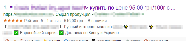 - Внедрение микроразметки для карточек товаров. Были размечены отзывы, ХК и цена, в итоге получили расширенный сниппет со звездочками рейтинга, навигационной цепочкой и ценой.