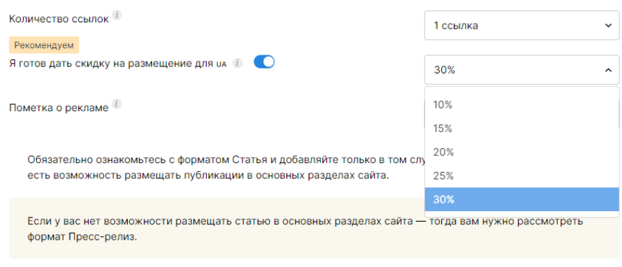 2. Активируйте кнопку в поле «Я готов дать скидку на размещение для 🇺🇦».