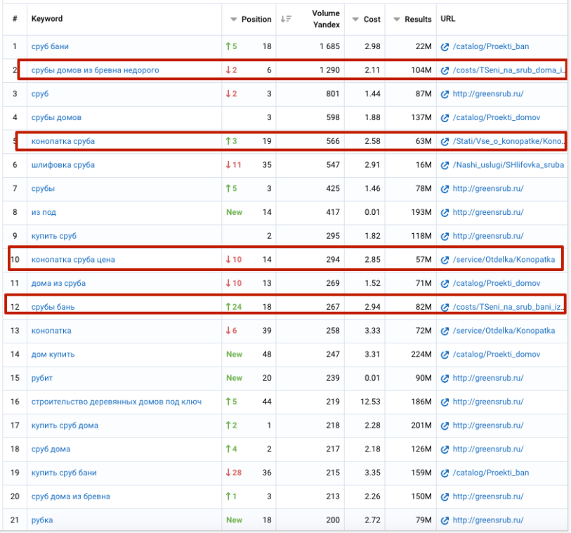 - Выделяем страницы около ТОПа, которые уже ранжируются. У вас есть запросы с хорошей частотой и позицией от 10-й до 20-й. Вы понимаете, что их можно добить до топа и ставите соответствующуй задачу крауд-маркетологам.