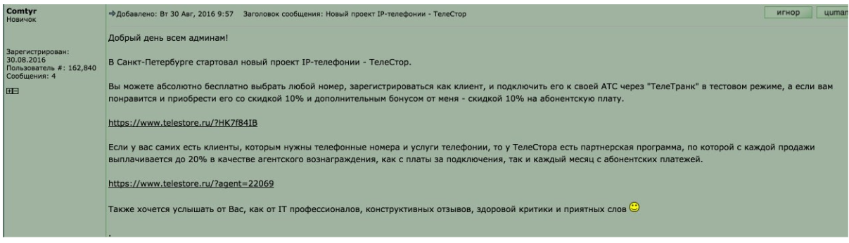 Как видим, ответ дан невпопад, да ещё и с двумя реферральными ссылками. Дальше мы наблюдаем реакцию и следующий ответ с нормальным решением давнего пользователя форума. Он задает вопросы и дает ссылку. Так должен выглядеть крауд-маркетинг.