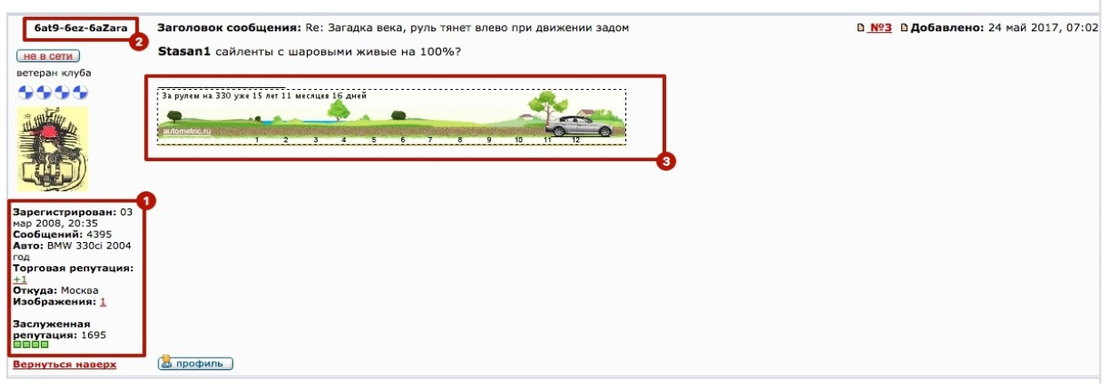 Оформление. Фотография тоже может быть разной и зависит от выбранной стратегии. Важно, чтобы она была прикольной и интересной. Самый лучший вариант - это красивый улыбающийся человек, поскольку это хорошо привлекает внимание. Крайне важно оформлять поинты под цифрой 1 на скриншоте выше - какой у вас автомобиль или другие достижения в зависимости от тематики форума. Подпись тоже лучше заполнять, поскольку она помогает влиться в сообщество.