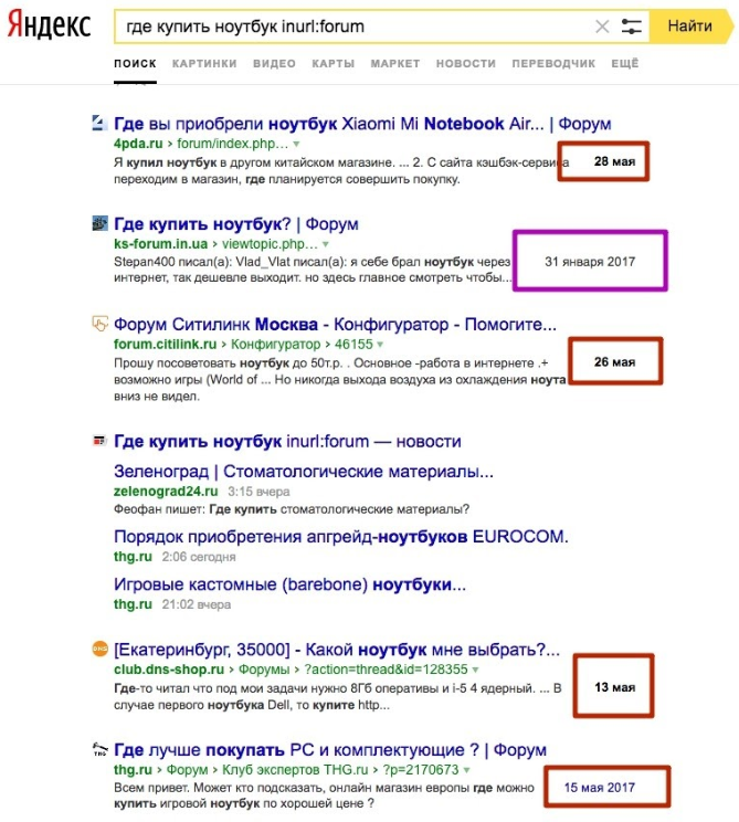 где заказать ноутбук inurl:forum. Использование оператор inurl в сочетании с поисковой фразой покажет вам страницы, на которых обсуждается нужная тематика и в URL которых есть упоминание форума.