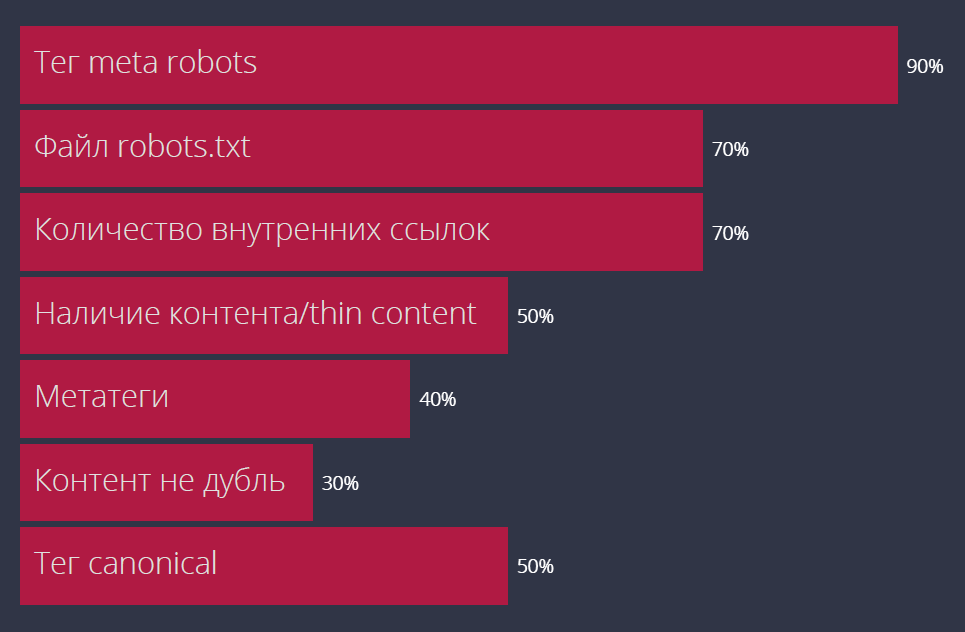 Первые три пункта для нас приоритетны. Качество контента и внешние ссылки проверяем в последнюю очередь.