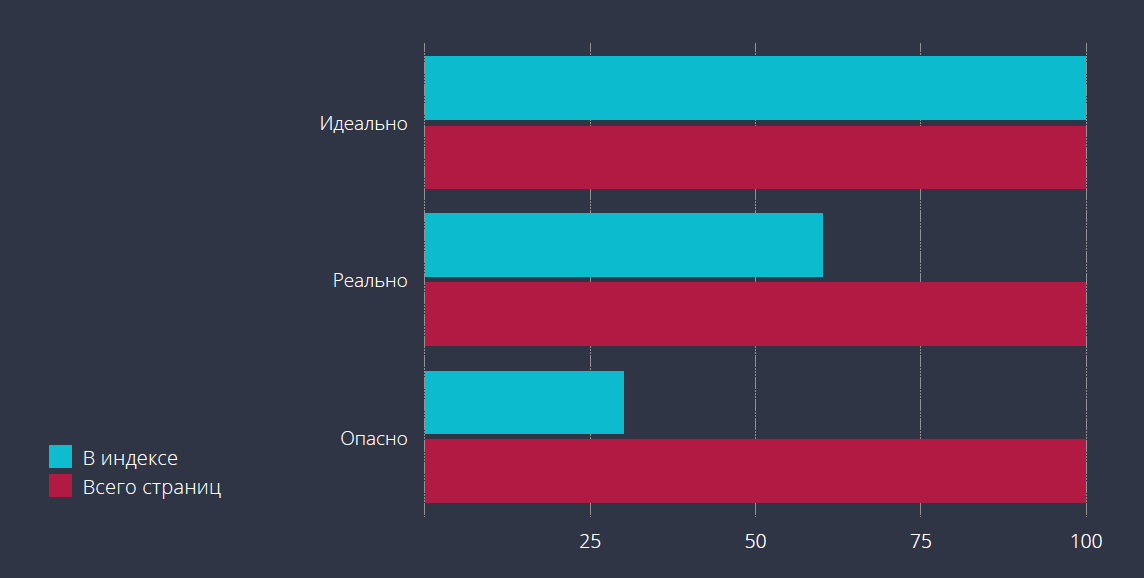 • сколько страниц определенного типа попало в индекс? Почему это произошло? Чем попавшие страницы отличаются от не попавших?