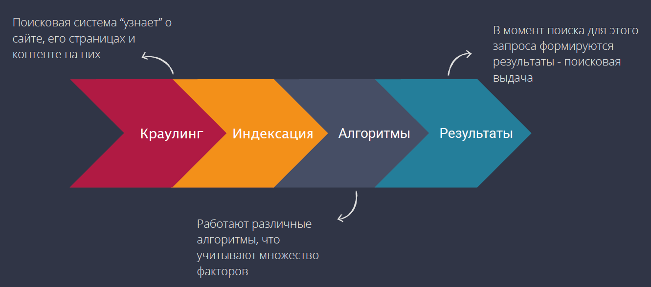 1. Краулинг. Здесь поисковая система парсит и скачивает ваши страницы.