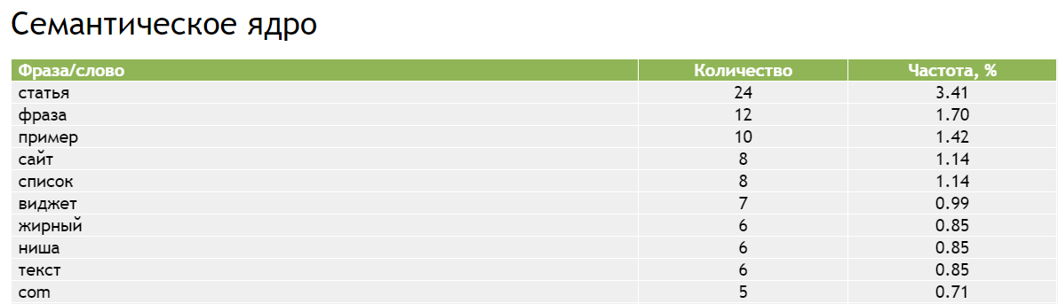 Бывают ситуации, когда наиболее частотными оказываются слова на подобии «хорошо»/«плохо». Это тоже не очень хороший показатель, поскольку свидетельствует о водянистости статьи.