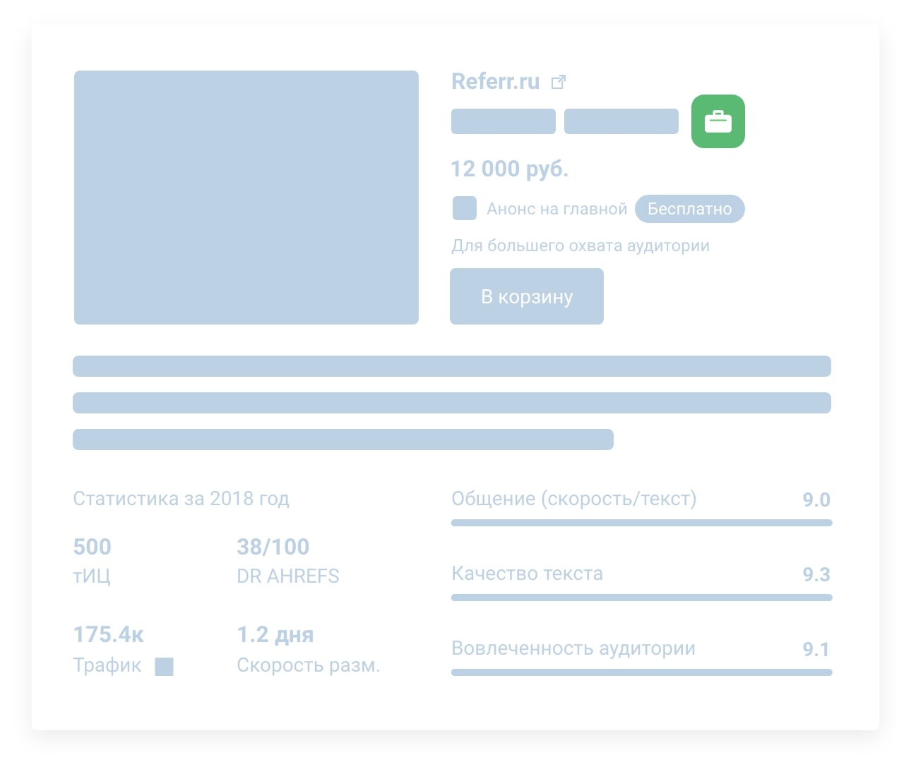 Поприветствуйте нашу абсолютно новую корзину! Простая, понятная, развернутая и удобная. Вы не упустите ни одной детали о выбранных площадках и ваших заданиях.