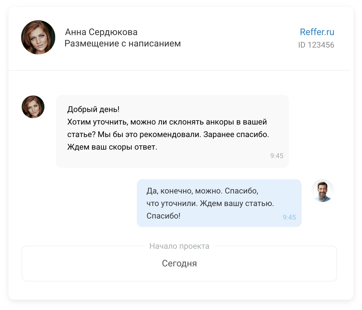 В диалогах личной переписки теперь, как в Греции — есть все! Название площадки, ID сделки, ссылка на статью...Чего еще пожелать?