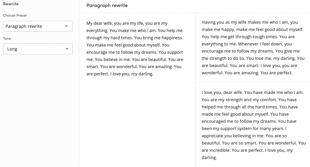 Paraphrasing. З допомогою інструменту можна робити рерайтинг, перенаписання тексту або його шматочку.