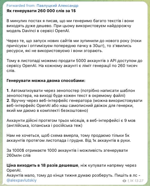 На даний момент ми більше 60% текстів генеруємо завдяки OpenAI.