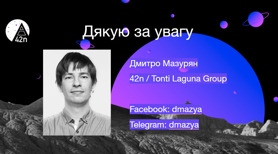 Звісно, доповідач зробив невеличкий огляд конкретних інструментів, якими користується його команда.
