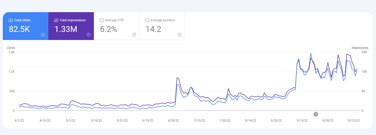 - приклад статистики одного з експериментальних сайтів, де просто весь контент генерований, запощений на сайт без ніякого рерайту.
