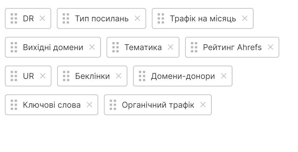 - Всі вибрані показники з'являться у полі справа. Їх можна легко переміщувати, змінюючи порядок відображення в каталозі.