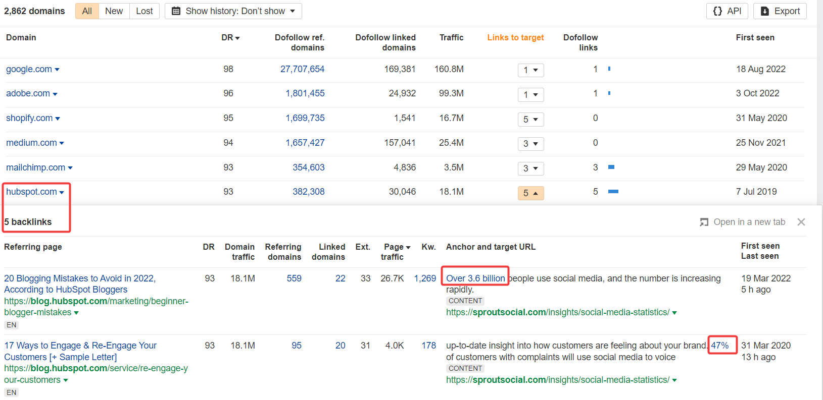 Хто б це не написав, якщо ви даєте цінність, то на вас будуть посилатися жирні бренди із високим DR. Там є Medium, але будь-хто може написати на medium. А от HubSpot і MailChimp — це вже вау.