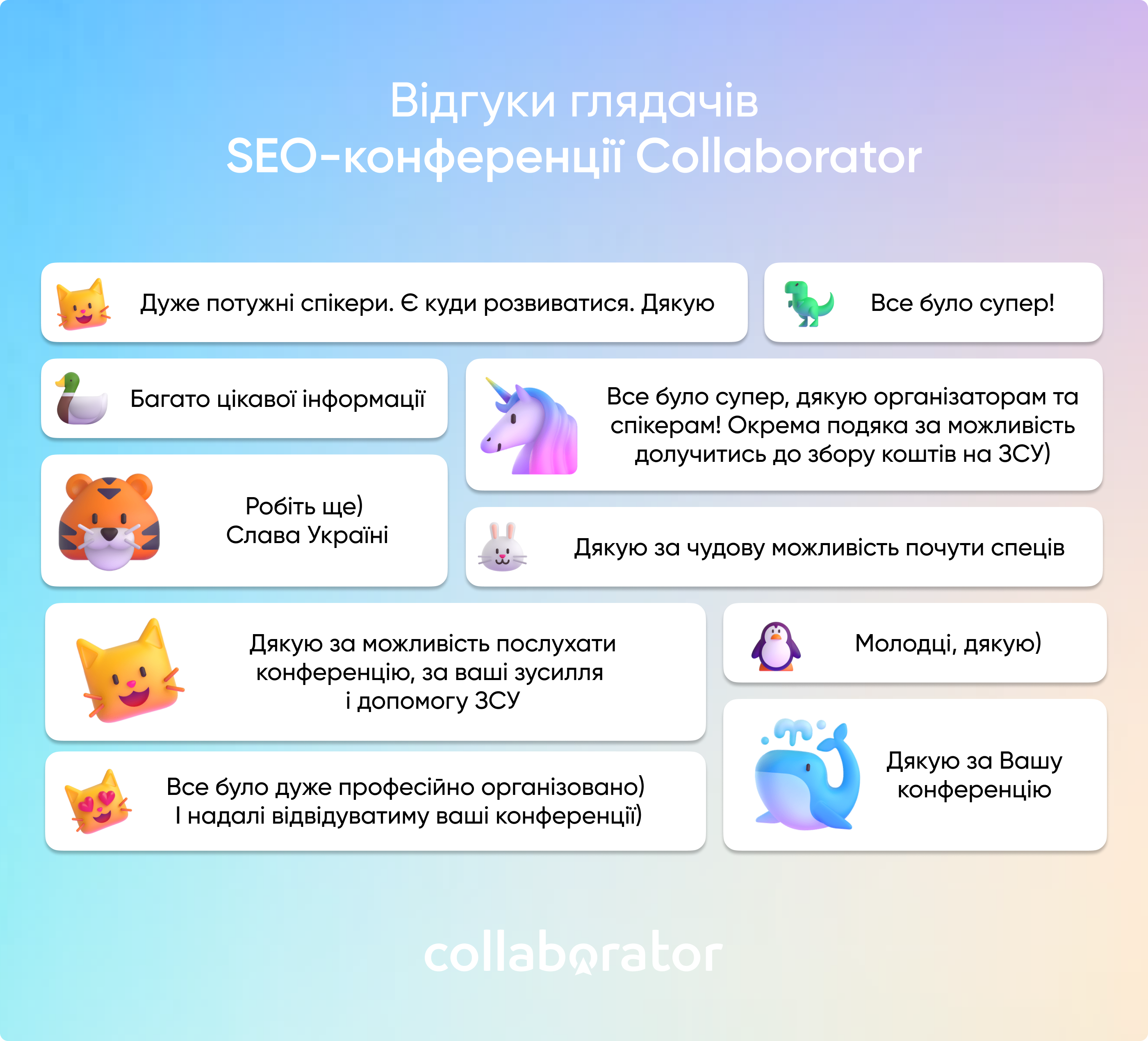 Ми отримали безліч вдячних відгуків, що лише підтверджують: інформація знайшла свого слухача, а SEO-конференції Collaborator приносять величезну користь як новачкам, так і профі у галузі пошукової оптимізації.
