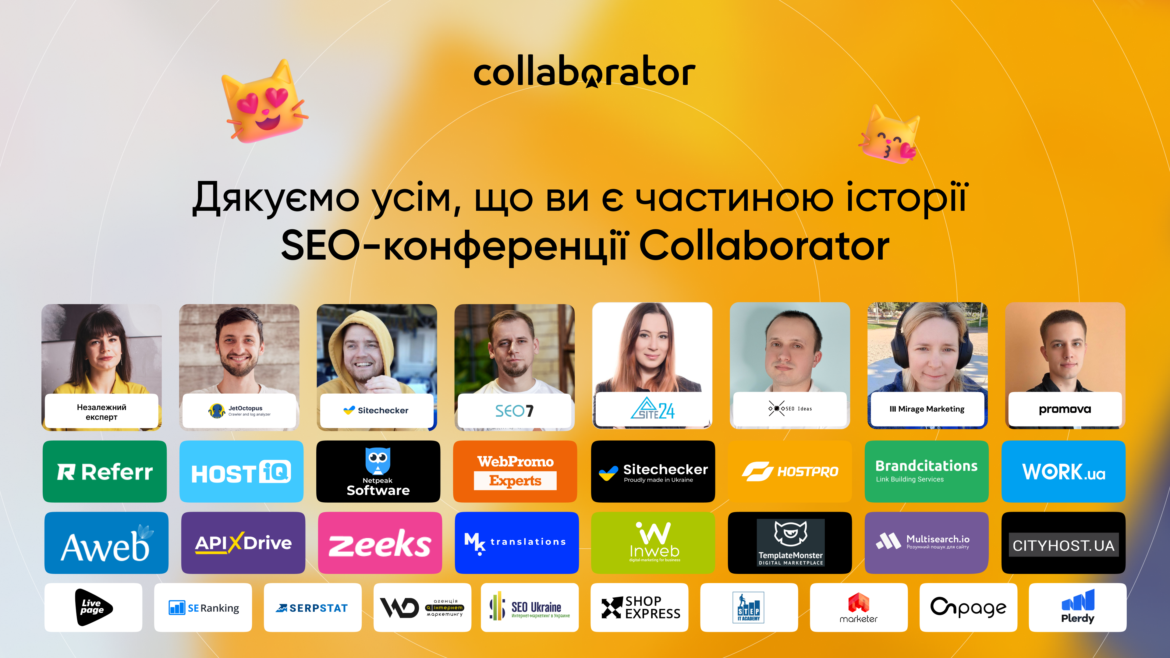 Ми активно розвиваємо наші спільноти у Фейсбук, Ютуб, Телеграм та Інстаграм, та спілкуємось на професійні теми у SEO-чаті Коллаборатора. Залишайтесь на зв’язку та до зустрічі на нових конференціях.