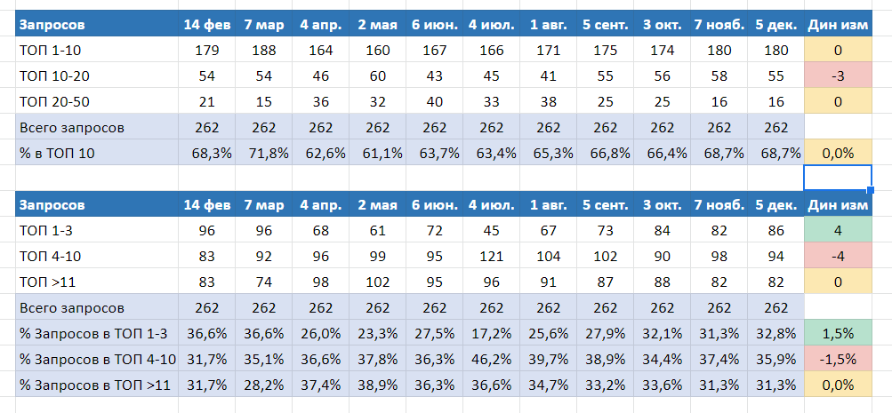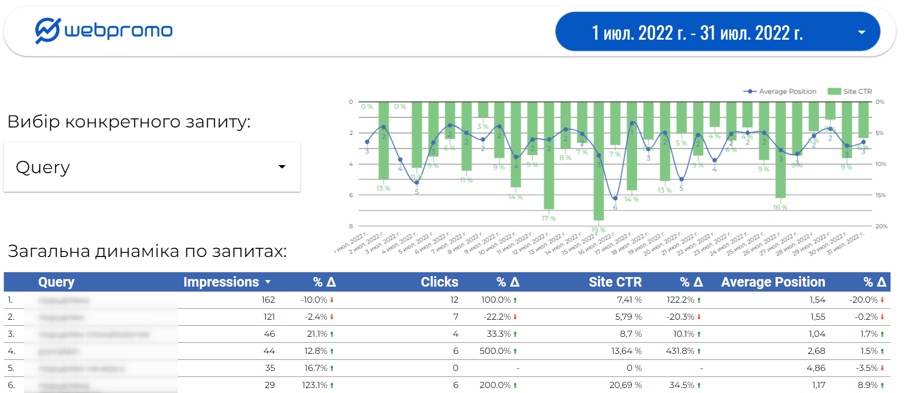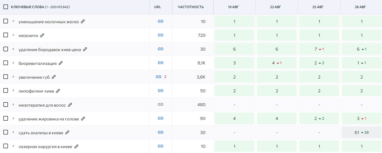 Тут зручно фільтрувати ключі та відслідковувати динаміку за певні періоди. І робити відповідні висновки: якщо просіли позиції, то чому — чи зробили щось конкуренти, чи були якісь зміни в алгоритмах пошукових систем тощо.