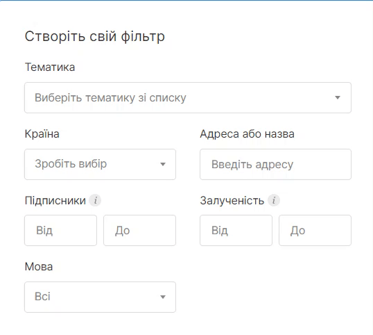 - підібрати канал за потрібною тематикою та кількістю підписників;