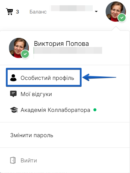 1. Натисніть на свій аватар і перейдіть в «Особистий профіль».