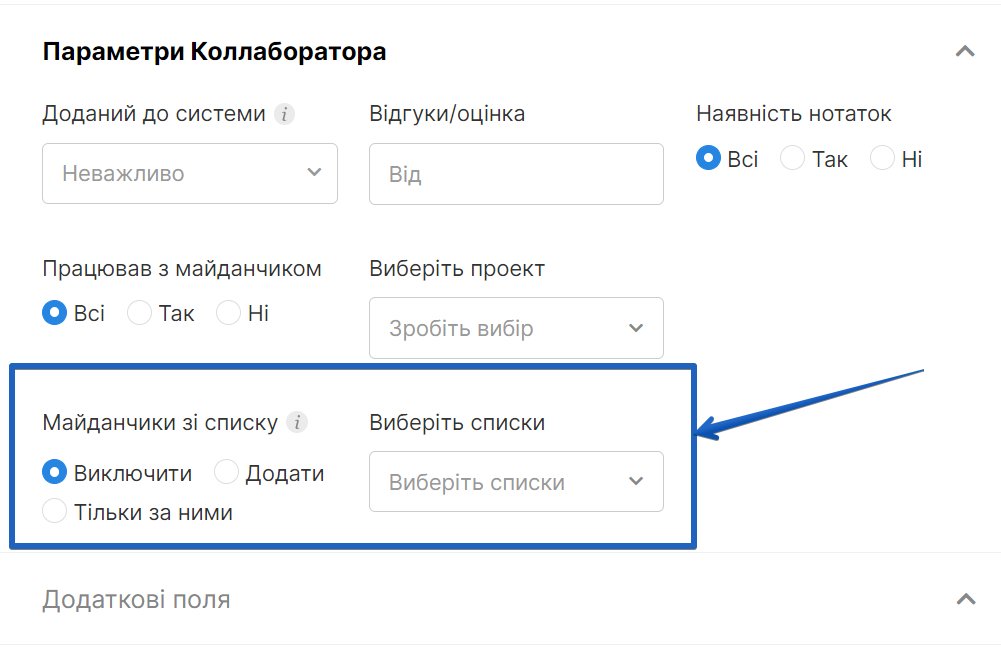 - Налаштувати фільтри лише по майданчиках з конкретного списку(ів)