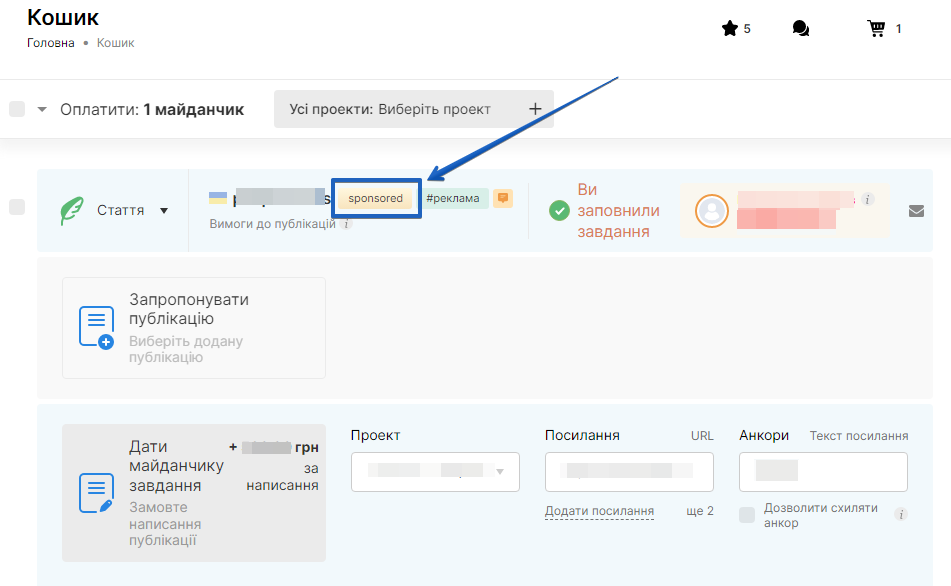Чи стоятиме тег «Sponsored» у вашій публікації? Ця інформація є в картці майданчика, також за цим параметром можна відфільтрувати сайти.