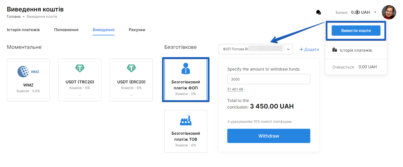 Виводьте кошти на свої рахунки ФОП, ТОВ та ще більш комфортно взаємодійте з системою Коллаборатора.