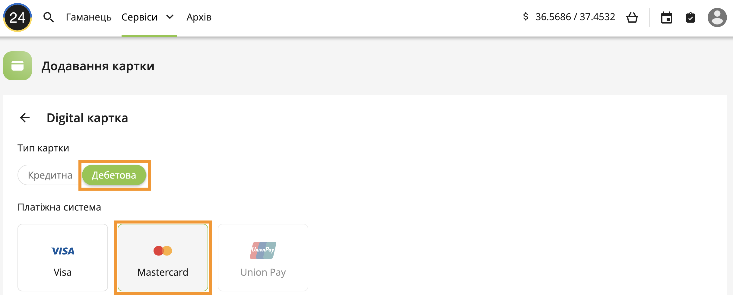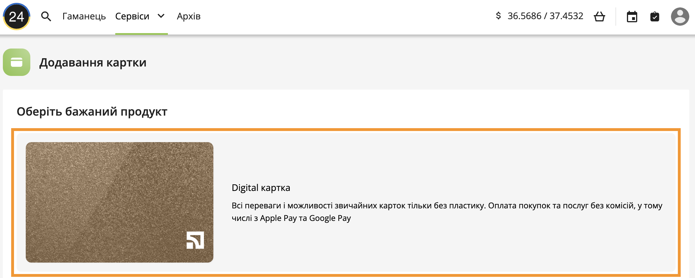 3. Выберите тип карты, которую хотите открыть. Рекомендуем Digital карту. Это стандартная карта со всеми возможностями, но без пластика. Пластик по необходимости вы сможете дозаказать.
