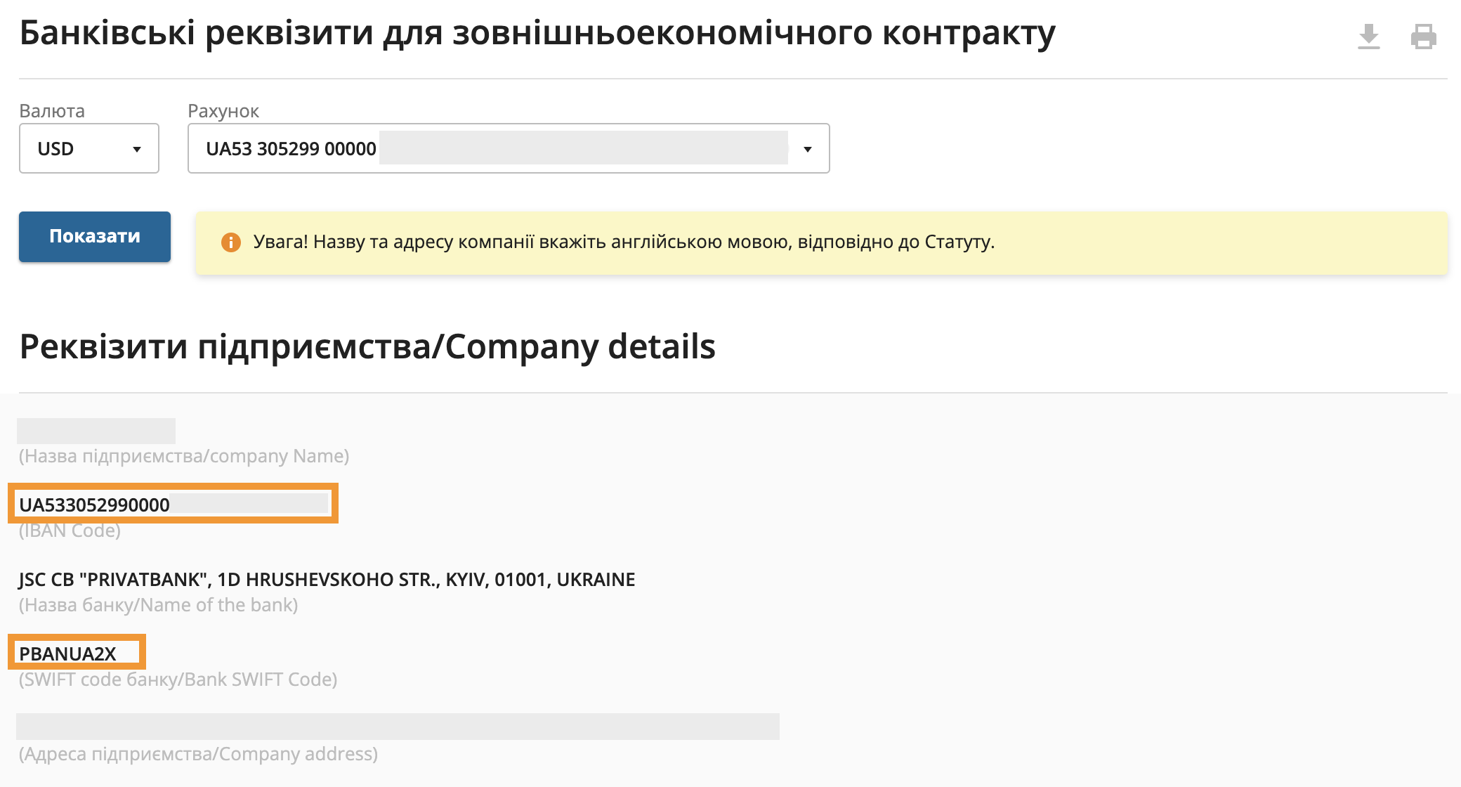 3. Укажите валюту доллара и выберите счет. Скопируйте счет IBAN и SWIFT/BIC code для добавления в аккаунт Коллаборатора согласно инструкции выше.